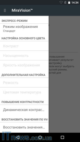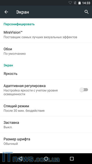 В целом в соответствующем подменю смартфона все выглядит классическим образом, включая поддержку MiraVision, которая являет собой технологию оптимизации изображения на экране в зависимости от условий. В подробностях на ней я останавливался в обзорах смартфонов Archos Diamond S и Diamond Plus, переходим по ссылкам выше и знакомимся.
