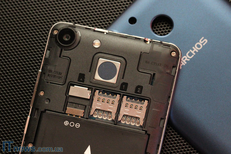 Слоты для SIM-карт и карт памяти обустроены под крышкой аккумуляторного блока. В данном терминале производитель отдал предпочтение формату micro-SIM.