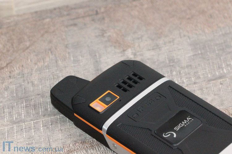 В виду поддерживаемой спецификации защиты корпуса, не обошлось, разумеется, и без резины. Из последней у Sigma mobile X-treme 3GSM заглушка портов USB и micro-USB, а еще кнопка активации/выключения фонарика.