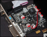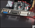 Устройство распаяно на плате коричневого цвета. Высота ее около 7 см, а потому можно с уверенностью говорить о том, что рассматриваемая "видяшка" может быть установленной, в том числе, в низкопрофильные корпуса. Толщина ее вместе с охлаждением – 2,6 см.