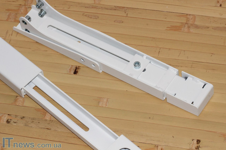 Благодаря простой (или не очень) "вещи" - особенности конструкции кронштейна – пользователь может выставить совершенно любую длину по стенке. А вот уже регулируемая консоль позволила выйти на ширину, достаточную для установки едва не любого устройства из описанной выше категории с весом до 45 килограмм. В этом плане параметры регулируются от 306 мм до 440 мм. Собирать MS01 в единую конструкцию лучше всего до монтажа на стенку – так попросту говоря, удобнее.