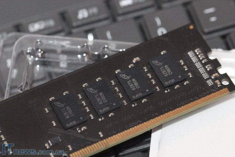 Данная планка не обладает охлаждающим радиатором, что, впрочем, легко объяснимо двумя "вещами" - незначительной потребляемостью энергии в 1,2 Вт, и как следствие, небольшим нагревом, а еще тем, что данный модуль все-таки не игровой.