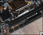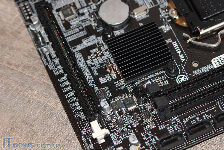 Немногим пониже упомянутого радиатора расположен слот PCI-Express x16, реализованный, само собой, разумеется, для монтажа видеокарты.