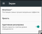 В настройках все классически. Есть возможность выбора обоев, настройки тайм-аута спящего режима, выбора заставки и пр. Кроме того, здесь реализована надстройка MiraVision, отвечающая за подстройку цветовой гаммы в зависимости от отображаемого контента.