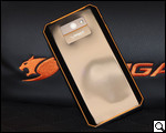 Осматривая корпус внешне, легко увидеть, что здесь много пластика. По периметру он с напылением soft touch. Панель спереди прикрывается стеклом Gorilla Glass третьего поколения. Стекло выпуклое – 2.5D. Какой материал сзади, производитель не уточняет, но по личным ощущениям перед нами пластик. К слову, если два вас важно сохранить заводской вид тыльной панели, рекомендую попробовать виниловые наклейки CARBON, которые предлагает производитель конкретно под эту модель – в обращении удобно, да и дизайн разнообразит, не говоря уже о защитной стороне дела. Оранжевые вставки по периметру спереди сзади сделаны также из пластика.