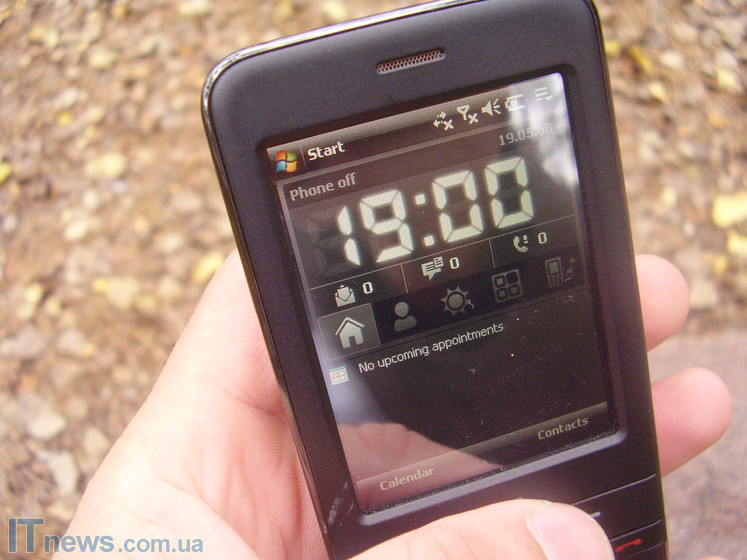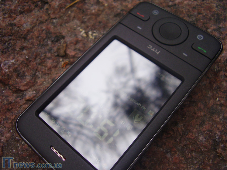 В целом приятные впечатления остались и от навигационного джойстика колесика. Выше мы писали, что помимо софт-блока кнопок на передней панели также находится многопозиционный навигационный джойстик. В процессе более детального осмотра было установлено, что в коммуникаторе джойстик проработан в форме колесика, посредством которого возможен удобный переход по подпунктам меню и приложениями. Кнопка подтверждения выбора хорошо дополняет упомянутое колесико. Вместе с кнопкой возвращения в предыдущий раздел меню и кнопкой запуска самого меню (одна из софт-кнопок), колесико отлично справляется с навигацией в целом. Впрочем, это не главный навигационный центр, а скорее альтернатива сенсорному управлению.