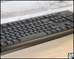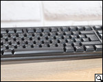Практически всю верхнюю часть корпуса клавиатуры занимает раскладка. Здесь есть отдельный цифровой блок, ряд кнопок F и пр. Снизу – подставки, предающие устройству наклона, выводы системы дренажа, а также аккумуляторный отсек и небольшие резиновые ножки, которые надежно удерживают устройство на твердой ровной поверхности, не позволяя ему по ней ездить. Уверен, пользователи, которые много работают с набором текста, такую особенность, кажущуюся, на первый взгляд, мелочью, оценят.