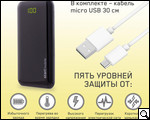 Комплектация СТАРТ PPB BLACKBIRD P06P-B 6000 мАч оказалась предельно простой – само устройство, краткое руководство пользователя плюс кабель micro-USB/USB. Все это удобно сложено в блистерном уплотнителе молочного цвета и помещено в упомянутую выше картонную коробку.