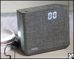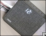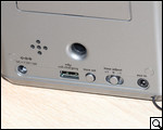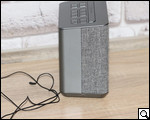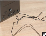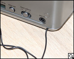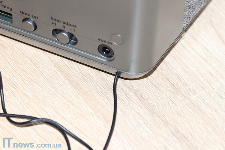 На панели сзади тоже есть на что взглянуть: гнездо aux-in, переключатель летнего времени, настройщик часов, порт USB и гнездо для подключения адаптера питания. Странный на первый взгляд, кабель, который выходит с низу на тыльной панели, в действительности является антенной.