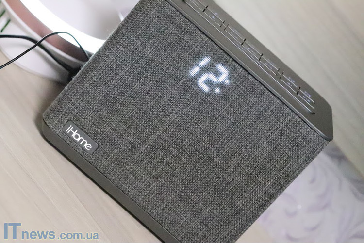 В корпусе iHome iPL232 FM (IBT232GE) фактически не используется металл – лишь пара вилок + окантовка USB-порта сзади. Точно также минимум резиновых вставок. Последние в виде антивибрационных ножек по периметру тыльной панели. Во всем же остальном применен пластик и ткань. Само по себе сочетание не новое, но благодаря удачно подобранным цветам, даже сравнительно недорогому устройству удалось придать премиальный дизайн.