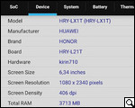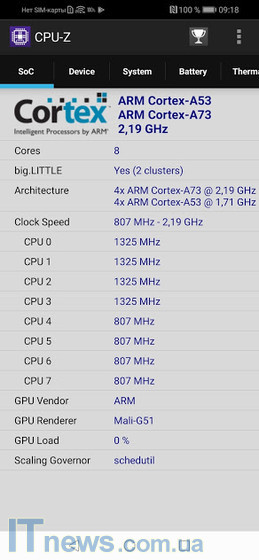 В качестве аппаратной платформы "под капотом" 8-ядерный чип Kirin 710F с тактовой частотой – 2,4 ГГц. Объем оперативной памяти – 4 ГБ. Графика – Mali-G51.