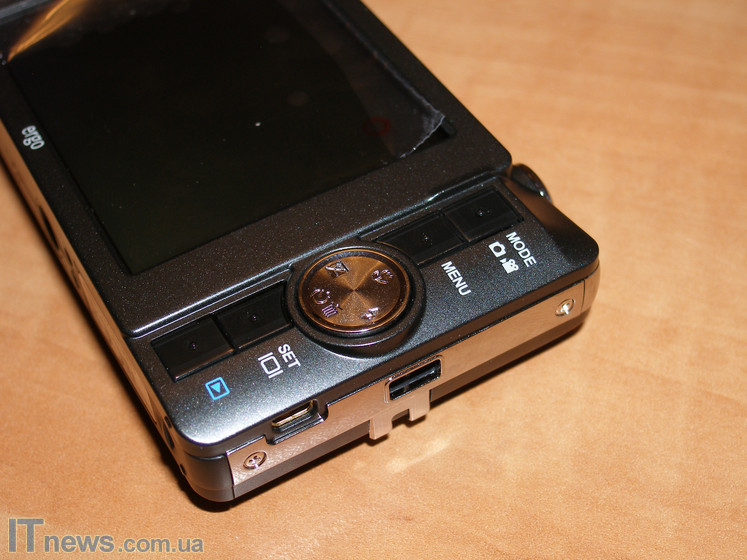 С правой стороны реализован небольшой "командный блок" управления, который состоит из четырех кнопок и многопозиционного навигационного колесика. Говорить в точности, какая кнопка за какую функцию отвечает, сложно, поскольку здесь они могут изменяться в зависимости от перехода по подпунктам меню. Впрочем, как бы ни было, а назначение кнопок запоминается, если можно так сказать, автоматически после нескольких детальных "путешествий" по меню. В целом проработка управленческих кнопок хорошая – ход плавный, легкий, но вместе с тем же, очень четкий. А вот проработка многофункционального колесика разочаровала. И дело здесь даже не в том, что производитель пытался сэкономить место на корпусе и сделал его не очень большим. Все дело в удобстве – им просто вообще неудобно управлять.