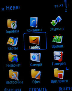 Несколько слов о функциональности. В нашей таблице мы кратко попытались обрисовать коммуникационное оснащение устройства. Кроме уже сказанного, стоит отметить широкую направленность терминала на работу с музыкой, а также другими медийными приложениями, о чем говорит и размещение динамиков, и реализация разъема 3,5 мм, большое количество специальных приложений. Предлагаем пользователю краткий фото-экскурс, который иллюстрирует начинку меню.