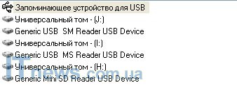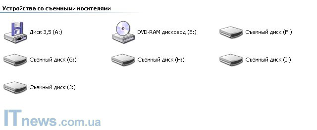 Зайдя в меню "Мой компьютер", пользователь может увидеть систему из пяти съемных дисков – именно так Windows определяет картридер – по числу основных разъемов для карт памяти.
