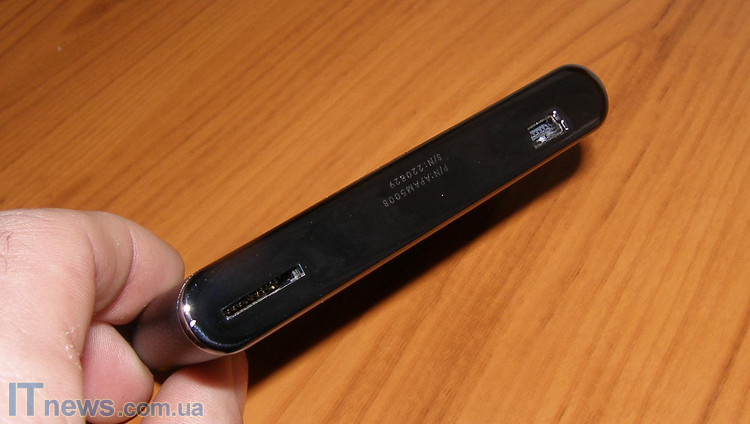 Если рассматривать гаджет эмблемой компании-производителя к себе, на одной из рабочих боковых граней можно увидеть разъем mini-USB, от которого посредством одноименного кабеля осуществляется питание и, само собой, разумеется - передача информации с карты памяти на компьютер или же наоборот.