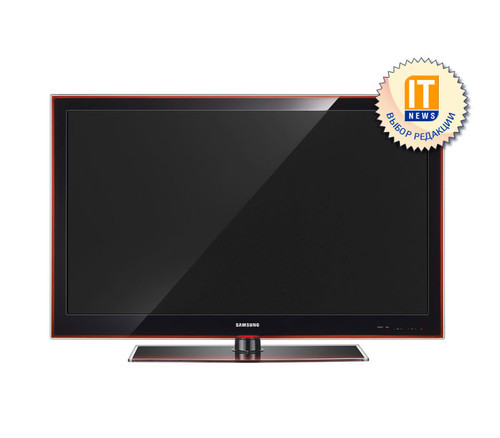 Сорокадюймовая модель компании. Перед нами строгий и вместе с тем привлекательный Crystal Design. Рубленные прямые грани, никаких легкомысленных скруглений, все четко и правильно, как Мерседес-"кубик". Не сразу, но все-таки бросается в глаза переход цвета на самой кромке рамки телевизора, и тут-то понимаешь, что Samsung не зря сделал ставку именно на Crystal Design – если телевизор регулярно протирать от пыли и отпечатков пальцев, он завораживает. А протирать, увы, придется постоянно, так как глянцевая поверхность так и просит, чтобы к ней коснулись пальцами.