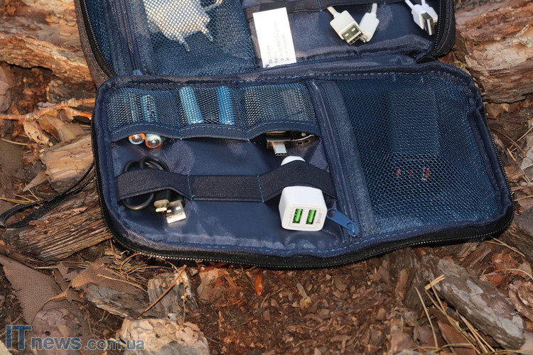 Що транспортував я? Не буду перелічувати через кому, а запропоную поглянути на серію фото нижче. До речі, на розміри мережевих зарядних та тих же повербанків варто зважати. Якщо мова за останнє, найкраще для RIVACASE 5633 – 10000 мА*год; мегазручно.