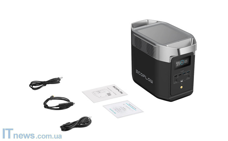 Тут мені сподобалось відразу дві речі – картон повторної переробки для упаковки EcoFlow DELTA 2, а також ввесь арсенал аксесуарів до станції, що знадобиться вам для життя у великому місті. Щодо останнього, тут мова за наступне: кабель заряджання від електричної розетки та окремий - підзарядки від автомобільного прикурювача. Ще маємо кабель DC5521 – DC5525, посібник користувача по даному приладу та додатковий, як "навігатор" по особливостях фірмового софту + звісно ж, гарантійна документація.