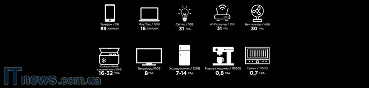 З приводу навантаження, в офісі – це три ноутбуки, принтер, світло, 1-2 чашки кави на кожного з нашої трійки + інтернет. Наче нічого не забув… Коротко кажучи, за підсумками можна отримати до 8 годин автономності. Звісно ж, за умови, що ви не будете друкувати книгу (адже лазерні принтери досить "прожерливі" щодо споживання електричної енергії) і не перевищите згаданий вище "ліміт" по каві, оскільки кавомашина також споживає багато. І так, я все-таки забув за наш корпоративний 1-дисковий NAS Synology DS120j; згоден, без сервера ну ніяк.