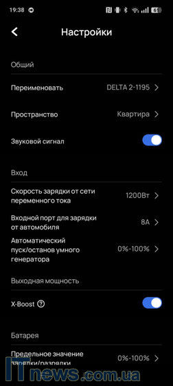 Справа зверху пункт налаштувань. В ньому доступна можливість перейменувати пристрій, що зручно, особливо якщо у вас кілька однакових моделей. Далі маємо можливість обрати простір, де буде знаходитися станція, оптимізувати швидкість заряду батареї та багато ін. Більше деталей далі на фото.