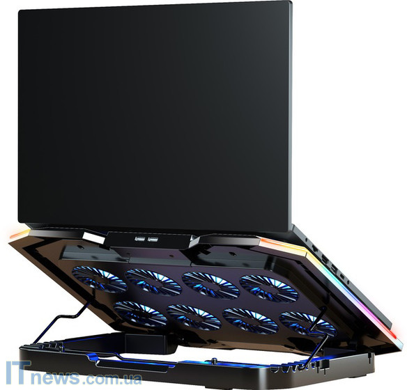 А ще – дизайном, в якому чудово поєднуються металеві та пластикові елементи, RGB-підсвіткою, двома портами USB та 8 вентиляторами, швидкість яких можна регулювати самостійно. Втім, лише зазначеним переваги виробу не обмежуються.