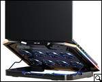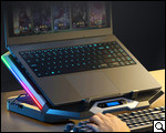Корпус Gamepro CP870 – це, передусім, масивна металева сітка в верхній частині. На практиці вона краще за інший матеріал "поглинає" тепло, що, безумовно, таки плюс. Металевою тут вийшла також нога-фіксатор підставки в одному з кількох передбачених конструкцією виробу положень; все решта – пластик, включаючи заслінку дисплея, сріблясті вставки по периметру та навіть відкидні ніжки на металі зверху, створені спеціально для того, щоб ноутбук не "їхав" по панелі, особливо перебуваючи під нахилом.