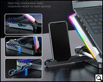 Крім деталізованої ілюстрації підставки з бонусом для телефону, на верхній кришці ще кілька корисних мініатюр: RGB, дані щодо рівнів нахилу, режимів роботи підсвітки та вбудований дисплей. За назву моделі тут також не забули.