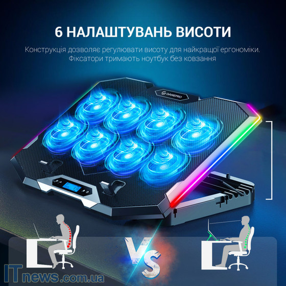 Gamepro CP870 – це правильна інвестиція на роки, що не здорожчає, буде ефективною в дуеті з будь-яким ноутбуком та додасть фарб у вашу роботу (відпочинок, до речі, також). Модель, що дійсно варта уваги, навіть якщо ви розраховували витратити на таку підставку трохи менше.