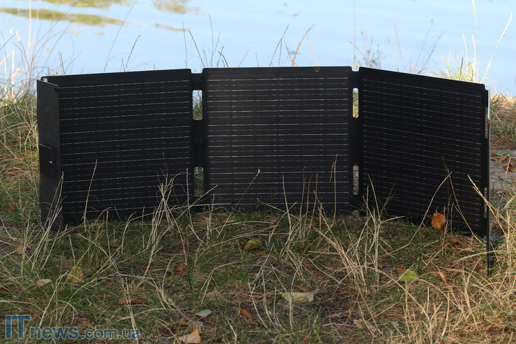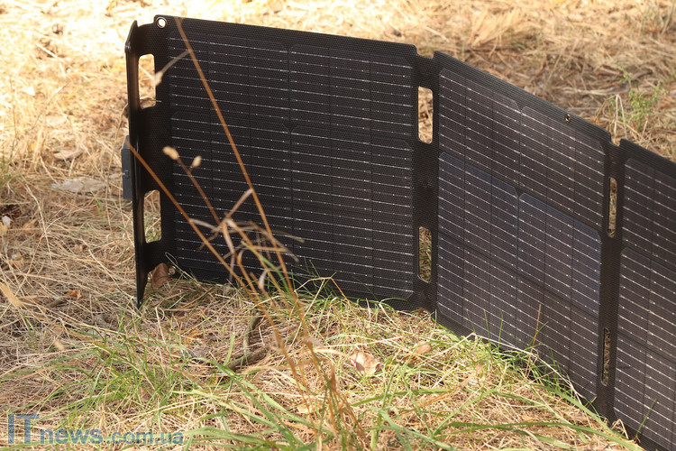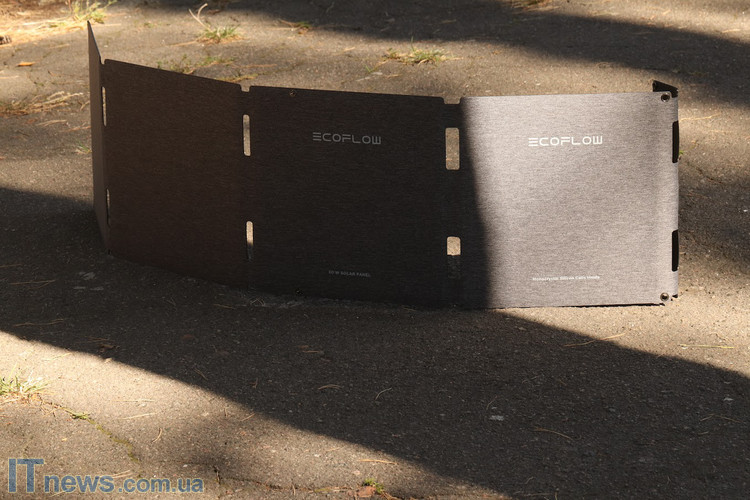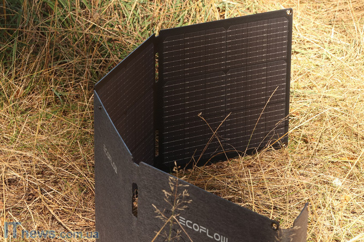 Підсумовуючи даний розділ, хочу сказати, що особисто мені сподобався формат панелі. В складеному вигляді у нас параметри співставні з габаритами 15,6-дюймового ноутбука і саме це максимально полегшує транспортування виробу; абсолютно ніяких додаткових умовностей. Сам по собі каркас панелі виконано з досить жорсткого матеріалу, який здатен забезпечити надійне горизонтальне розгортання EcoFlow 60W Solar Panel навіть за умов далеко не самого рівного рельєфу місцевості. Ну, а для металевих петель зі "штатного" комплекту поставки передбачені відповідні отвори з також металевим підсиленням. Словом, перед нами саме той приклад, за який можна з впевненістю сказати "Забагато зручностей не буває"!