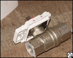 - Не потребує інструментів та розбирання корпусу, 4 можливих позиції встановлення електропривода відносно запірного крана, антисаботажна скоба для ускладнення;