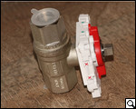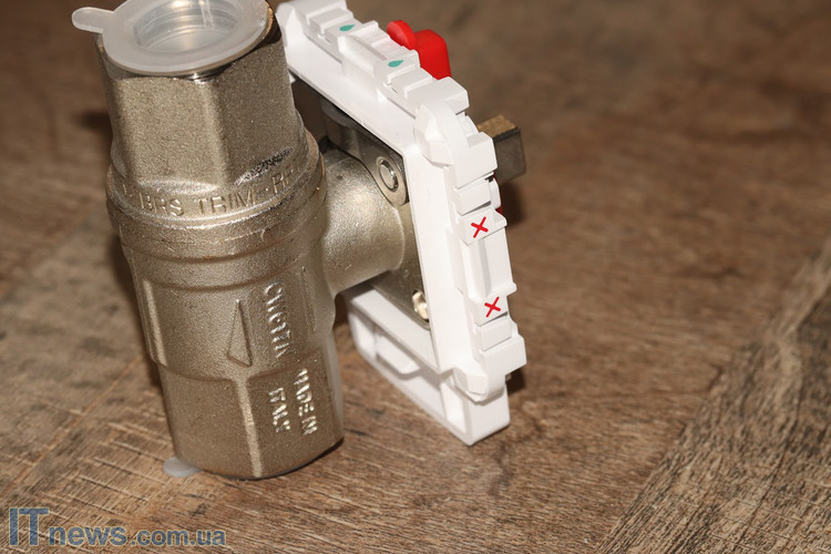 Знімний на користувацькому рівні блок з електричним приводом під час монтажу користувач (або ж сервісна служба – залежить від зробленого вами вибору) може встановити одним з чотирьох способів відносно труби. Що приємно – за підсумками незалежно від самого формату встановлення, у вас лишається доступ саме з того боку, де передбачена кнопка керування. На цій же стороні з кнопкою розміщена також скоба, яка фіксує блок з приводом на латунному крані. Ну або ж навпаки – тут вже як кому зручніше. Не буде за складність помітити відповідні маркери перекриття або ж відкриття крана – червоні – відповідно перекриття; зелені – виконання протилежної дії. Загалом, це все можна назвати зручним рішенням, особливо якщо віддалене керування неможливе з якоїсь причини.