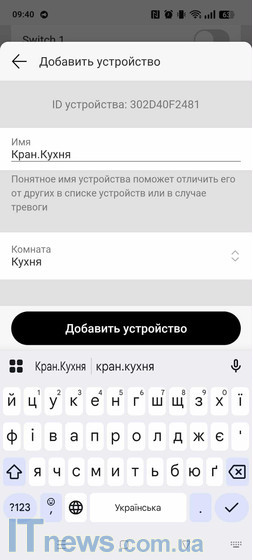 Далі підключення на додаток. Тут все просто, по часу – до 2-3 хвилин. Сказати, що це складно? Особисто я так не вважаю, додаткова допомога вам не знадобиться, навіть у тому випадку, якщо це ваш перший подібний досвід. В самому низу головного меню обираєте "Додати новий пристрій" - скануєте дані на одній з двох згаданих вище наліпок - вводите ім’я виробу, в майбутньому його можна буде змінити та визначаєте кімнату розміщення. Крім того, в процесі додавання цього пристрою не забуваєте натиснути на вже згадану на стінці кнопку. Ось це, власне і все!