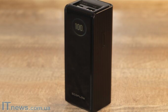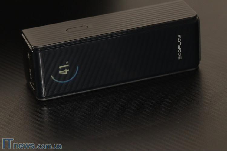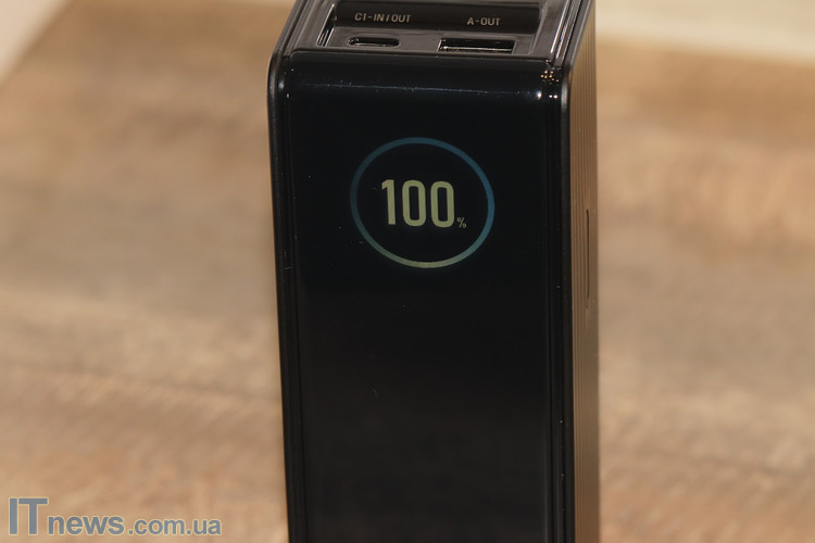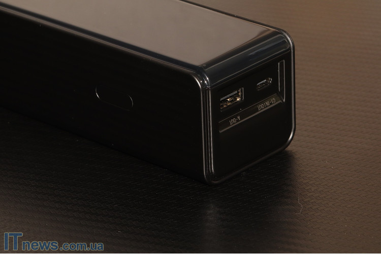 Глянсова панель спереду, а ще торець зверху з олеофобним покриттям. Можливі відбитки пальців і тому подібні "речі" тут очищуються без особливих складнощів – мав змогу перевірити. А крім всього, ця панель – це ну просто таки неперевершений елемент декору - абсолютно новий погляд в промисловому дизайні на те, як саме має виглядати сучасний повербанк.
