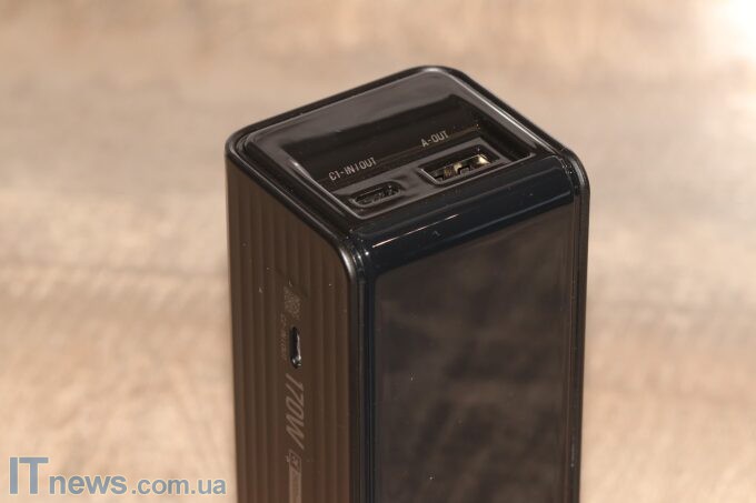 Порти, що розміщені на верхньому торці – це ще один type-C та повноцінний USB. Біля них відповідно С1 та А. Крім того, наявний на цій панелі порт type-C отримав in/out; про що мова ми вже говорили вище.
