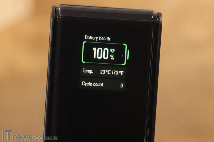 Отже, шляхом подвійного натиску кнопки користувач викличе невелике технічне підменю з відображенням стану акумулятора, поточної температури циклів перезаряджання і так ін.