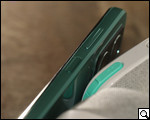 По типу мобільного телефона HMD 2660 Flip, за який йшлося в цьому огляді раніше, HMD Pulse Pro також доступний в кількох кольорах корпусу, що, як на мене, є сильною стороною моделі. То ж тримайте на вибір космічно-чорний, сутінково-пурпуровий, а ще крижаний зелений. Нескладно помітити вже на фото – у нас було останнє зі згаданих "поєднань". До речі, глянець не лише передньої, але й задньої панелей дійсно чимось нагадує кригу. Що ж маємо випадок, коли фантазії дизайнерів знайшли своє, скажімо так, документальне підтвердження.