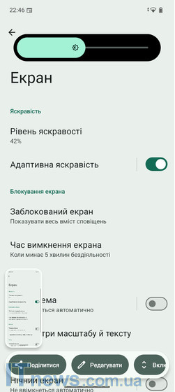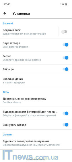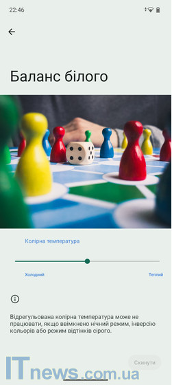Далі кілька слів за налаштування. У відповідному підменю маємо адаптивне та ручне регулювання рівня підсвітки, можливість задати чорну чи ж білу тему, регулювання балансу білого та ін. Необхідна деталізація щодо налаштувань далі на ілюстраціях.