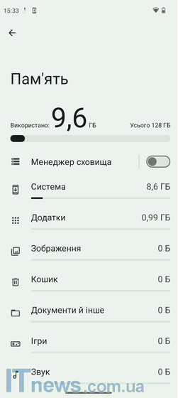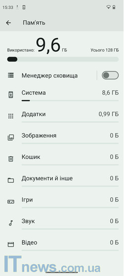 У нас в редакції побувала перша зі згаданих версій. Скільки з заявлених 128 ГБ вже "з коробки" забирає під себе ОС та технічне програмне забезпечення, а скільки залишається за користувачем дивимося далі на ілюстраціях.