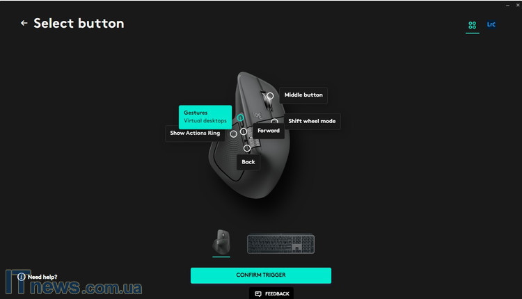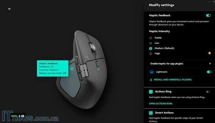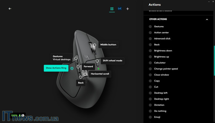 Далі поговоримо за функціональність, яка вигідно вирізняє MX Master 4 на фоні можливих конкурентів – особливостях Haptic Sense Panel та Actions Ring.