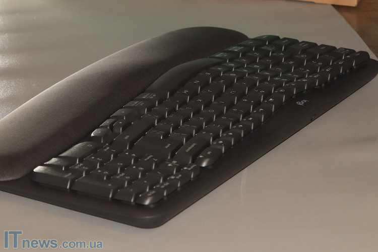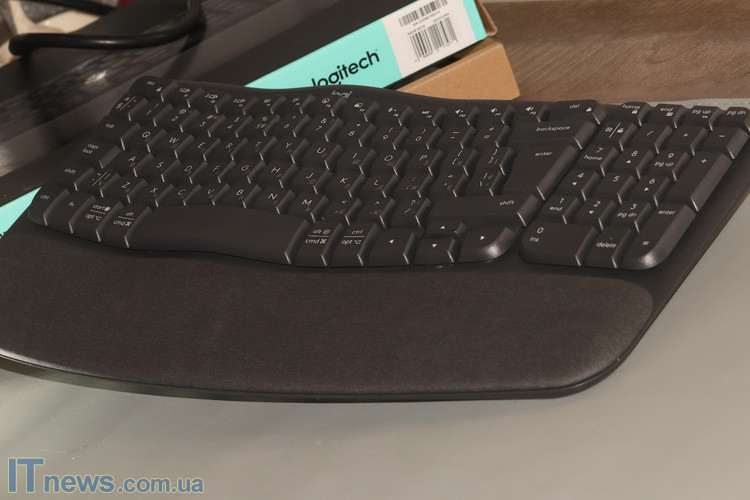 Далі ще один спойлер – розкладка Logitech Wave Keys – це чистий кайф, звикання надзвичайно швидке. Легко помітити – вона тут займає дві третини верхньої частини корпусу; решта за вже згаданою підкладкою під руки.