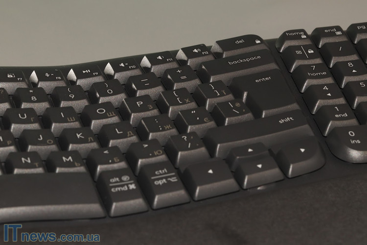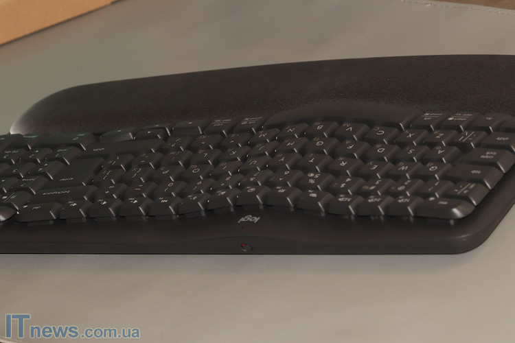 Але повернемося до формфактора. Настільки незвичайний формат у вигляді хвилі відверто викликає питання щодо переваг. І ці переваги потрібно відчути особисто. Що я маю на увазі!? Дана модель "заточена" під те, щоб користувачеві з нею було максимально зручно. В Американському товаристві ергономіки з цим погоджуються, і саме тому особисто відзначили дану модель, як максимум, який можна отримати від бездротової клавіатури. У мене було достатньо часу, щоб спробувати виріб в роботі особисто і, відповідно, погодитися з думкою згаданих вище експертів, або ж спростувати її. І знаєте що!? Розкладка у вигляді хвилі – це не лише щось нове! Це дійсно максимально зручний формат серед всіх що мені траплялися раніше. Я працював з моделлю близько місяця після свого "штатного" ноутбука ASUS і ось тепер за підсумками цього знайомства вже ставлю під сумнів, що готовий повернутися до розкладки свого "старого" портативного ПК – зручність Logitech Wave Keys захоплює вже з перших хвилин знайомства. Але досить за формат … Поки три крапки, до зручності ще повернемося.