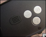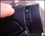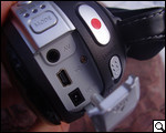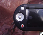За ней идет панель с трема функциональными разъемами. О них мы уже говорили – это разъем для видеокабеля, кабеля синхронизации с компьютером, а также шнура зарядки. Немного справа расположен кнопка включения питания устройства, а также ползунок активации работы камеры в режиме видео. При помощи этого же ползунка пользователь может переключиться из любого режима в режим видео.