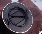 Объектив прикрывает тонкая, но вместе с тем, прочная шторка, которую во время проведения съемки пользователю необходимо отодвигать вручную при помощи специального переключателя. Последний из элементов размещен на верхней части камеры, непосредственно сразу же за металлической окантовкой.