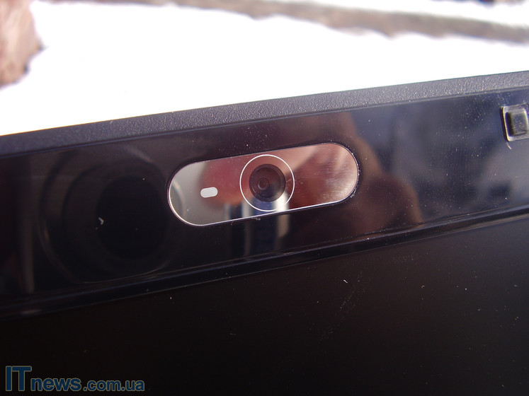 Переходя непосредственно к дисплею, вначале стоит отметить следующее: дисплей в U120 матовый, что, конечно же, не может не радовать. Экран широкоформатный. Окантовывает его широкая глянцевая вставка, на которой, в свою очередь, располагаются глазок встроенной камеры, а также прорезь микрофона. Первое находится на верхней линии окантовки, а второе – на правой боковой грани.