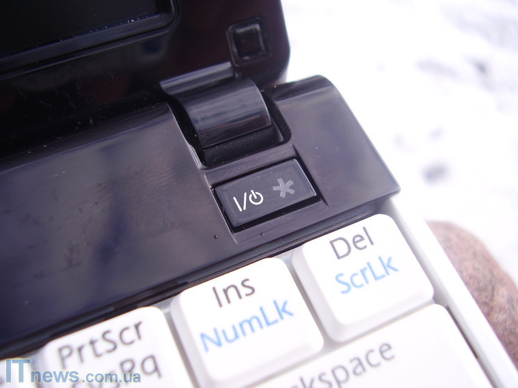 Между клавиатурой и дисплеем устроена всего одна кнопка – это кнопка включения питания нетбука. Она находится ближе к правой боковой грани.