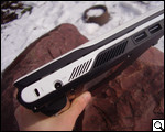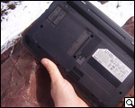 Осмотрев тыльную боковую грань, мы увидели, что съемная батарея здесь реализована таким образом, чтобы держать под углом рабочую площадку. Под этим подразумевается определенное удобство в работе с клавиатурой.