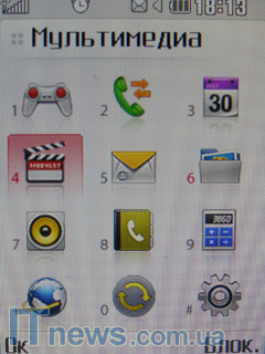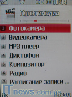Из раздела "Мультимедиа" открывается доступ к запуску встроенной камеры в режиме фото- или видеосъемки, запуску музыкального плеера, приложений встроенного диктофона и композитора, а также fm-приемника. На фоне всего этого несколько непонятным является факт, почему производитель в музыкальном телефоне не реализовал разъем 3,5 мм для стандартных наушников, а поставил собственный разъем, что уже является по определению некоторым анахронизмом.