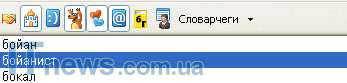 Интерфейс меню программы достаточно прост. В верхней горизонтальной строчке расположен ряд иконок словарей. Переключение между ними простейшее – для этого необходимо всего только нажать на иконку. Немного правее от иконок идет в некотором роде подпункт "Словарчег", который позволяет выбирать необходимый словарь. Зайдя в него, пользователь получает возможность переключить и вынести необходимые словари в уже упомянутую строчку выбора.