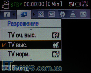 Строго по тыльной стороне проходит панель управления режимами съемки. Стоит напомнить: в Samsung SMX-F30 возможны два направления съемки – видео- и фоторежимы. За переключения между режимами съемки и просмотром контента отвечает кнопка mode.