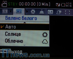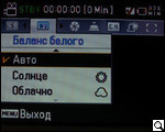 | Баланс белого | Авто, солнце, облачно, флуор.лампа, лампа накаливания, выбор ББ |